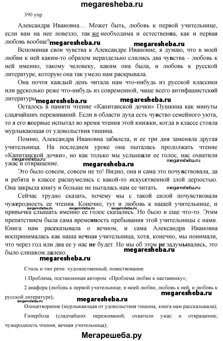 Подробный решебник (ГДЗ) по Русскому языку за 10‐11 (десятый‐одиннадцатый) класс - готовый ответ упражнения - 390. Авторы учебника: Власенков, Рыбченкова. Издательство: Просвещение 2009.