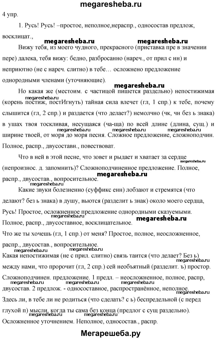 Подробный решебник (ГДЗ) по Русскому языку за 10‐11 (десятый‐одиннадцатый) класс - готовый ответ упражнения - 4. Авторы учебника: Власенков, Рыбченкова. Издательство: Просвещение 2009.