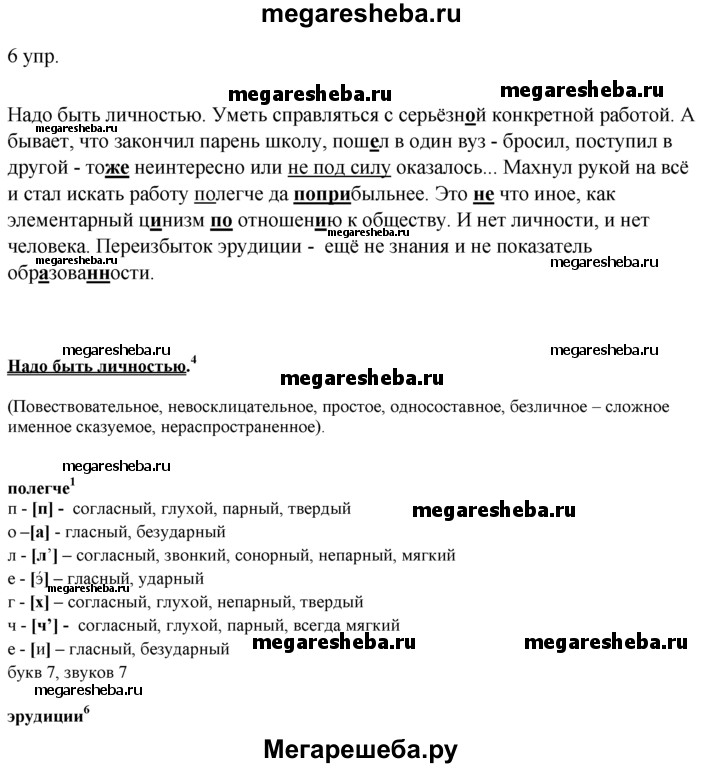 Подробный решебник (ГДЗ) по Русскому языку за 10‐11 (десятый‐одиннадцатый) класс - готовый ответ упражнения - 6. Авторы учебника: Власенков, Рыбченкова. Издательство: Просвещение 2009.
