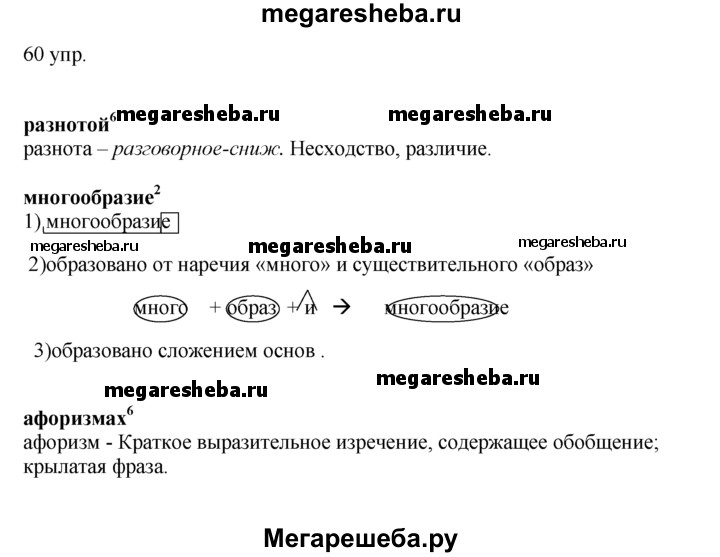 Подробный решебник (ГДЗ) по Русскому языку за 10‐11 (десятый‐одиннадцатый) класс - готовый ответ упражнения - 60. Авторы учебника: Власенков, Рыбченкова. Издательство: Просвещение 2009.