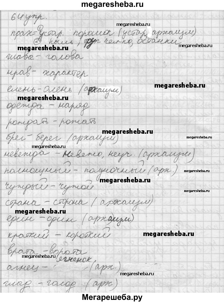 Подробный решебник (ГДЗ) по Русскому языку за 10‐11 (десятый‐одиннадцатый) класс - готовый ответ упражнения - 64. Авторы учебника: Власенков, Рыбченкова. Издательство: Просвещение 2009.
