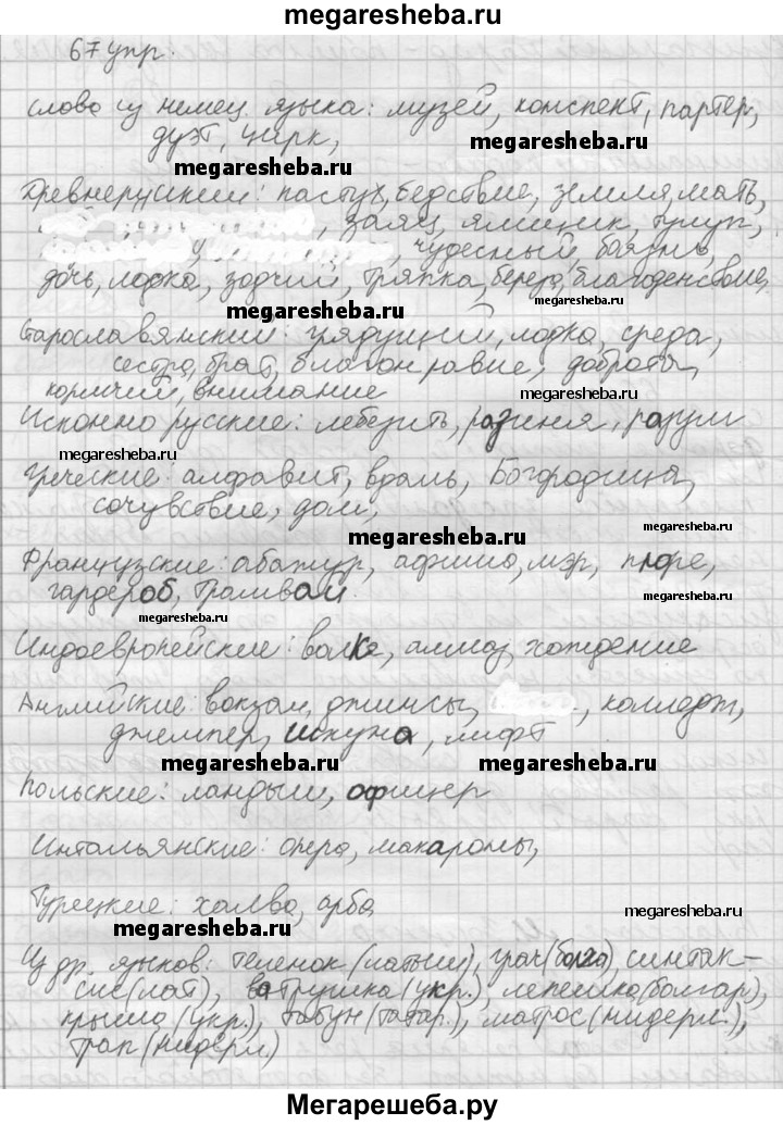 Подробный решебник (ГДЗ) по Русскому языку за 10‐11 (десятый‐одиннадцатый) класс - готовый ответ упражнения - 67. Авторы учебника: Власенков, Рыбченкова. Издательство: Просвещение 2009.