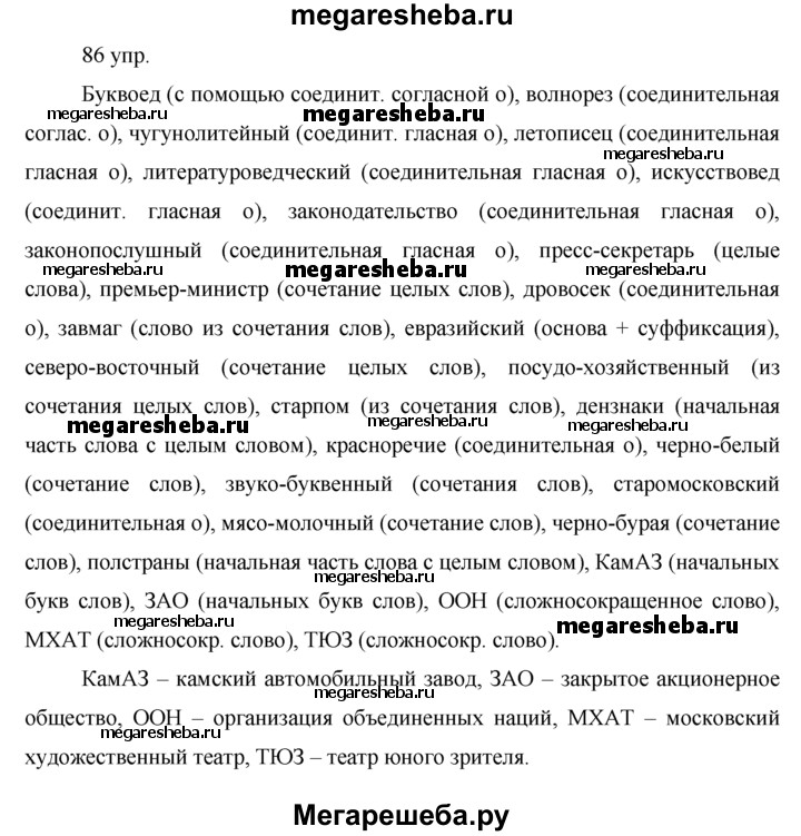 Подробный решебник (ГДЗ) по Русскому языку за 10‐11 (десятый‐одиннадцатый) класс - готовый ответ упражнения - 86. Авторы учебника: Власенков, Рыбченкова. Издательство: Просвещение 2009.