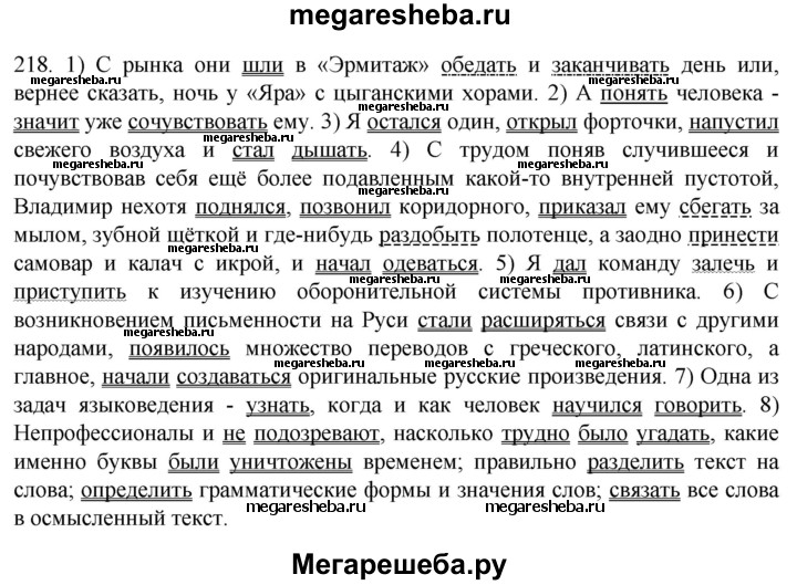 Подробный решебник (ГДЗ) по Русскому языку за 11 (одиннадцатый) класс - готовый ответ упражнение - 218. Авторы учебника: Гусарова, Базовый и углубленный уровень. Издательство: Вентана-граф 2019-2023.