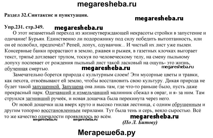 Подробный решебник (ГДЗ) по Русскому языку за 11 (одиннадцатый) класс - готовый ответ упражнение - 231. Авторы учебника: Гусарова, Базовый и углубленный уровень. Издательство: Вентана-граф 2019-2023.