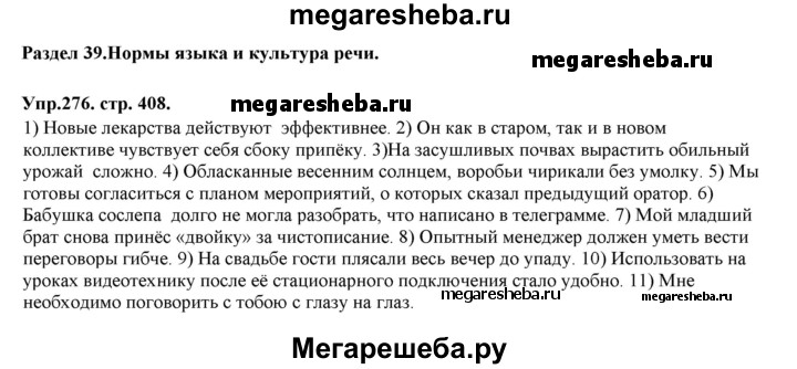 ГДЗ по русскому языку 11 класс Гусарова Базовый и углубленный уровень упражнение - 276