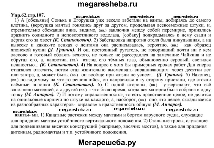 Подробный решебник (ГДЗ) по Русскому языку за 11 (одиннадцатый) класс - готовый ответ упражнение - 62. Авторы учебника: Гусарова, Базовый и углубленный уровень. Издательство: Вентана-граф 2019-2023.