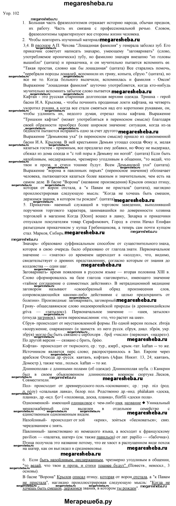 Подробный решебник (ГДЗ) по Русскому языку за 11 (одиннадцатый) класс - готовый ответ упражнение - 102. Авторы учебника: Львова, Львов, Базовый уровень. Издательство: Мнемозина 2019.