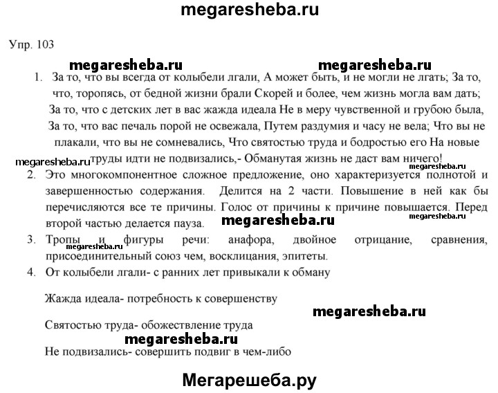 Подробный решебник (ГДЗ) по Русскому языку за 11 (одиннадцатый) класс - готовый ответ упражнение - 103. Авторы учебника: Львова, Львов, Базовый уровень. Издательство: Мнемозина 2019.