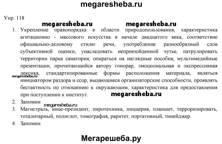 Подробный решебник (ГДЗ) по Русскому языку за 11 (одиннадцатый) класс - готовый ответ упражнение - 118. Авторы учебника: Львова, Львов, Базовый уровень. Издательство: Мнемозина 2019.
