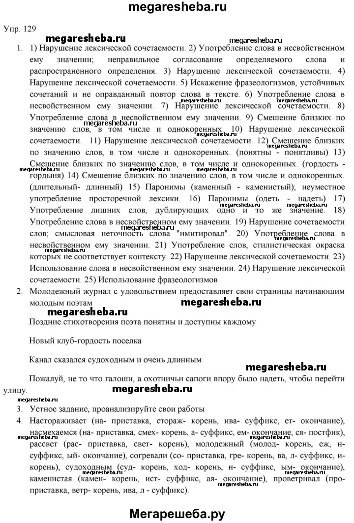 Подробный решебник (ГДЗ) по Русскому языку за 11 (одиннадцатый) класс - готовый ответ упражнение - 129. Авторы учебника: Львова, Львов, Базовый уровень. Издательство: Мнемозина 2019.