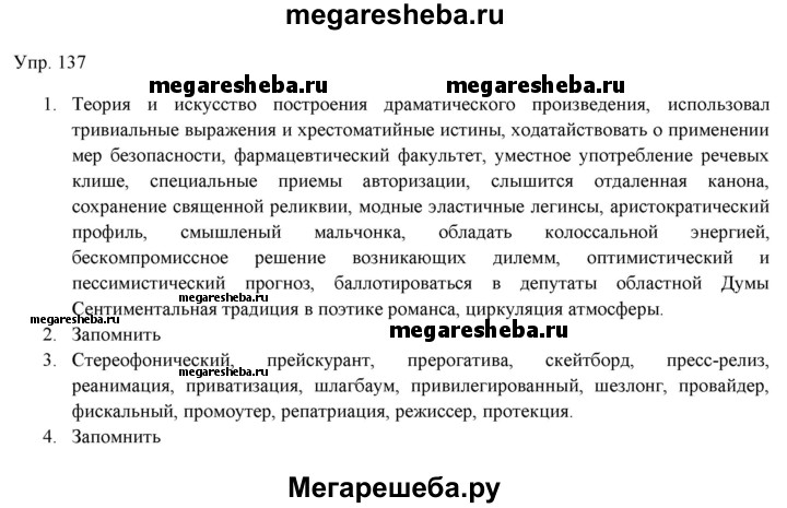 Подробный решебник (ГДЗ) по Русскому языку за 11 (одиннадцатый) класс - готовый ответ упражнение - 137. Авторы учебника: Львова, Львов, Базовый уровень. Издательство: Мнемозина 2019.