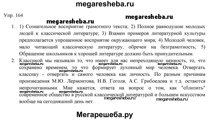 Подробный решебник (ГДЗ) по Русскому языку за 11 (одиннадцатый) класс - готовый ответ упражнение - 164. Авторы учебника: Львова, Львов, Базовый уровень. Издательство: Мнемозина 2019.