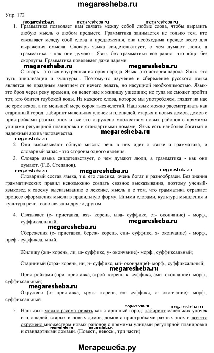 Подробный решебник (ГДЗ) по Русскому языку за 11 (одиннадцатый) класс - готовый ответ упражнение - 172. Авторы учебника: Львова, Львов, Базовый уровень. Издательство: Мнемозина 2019.