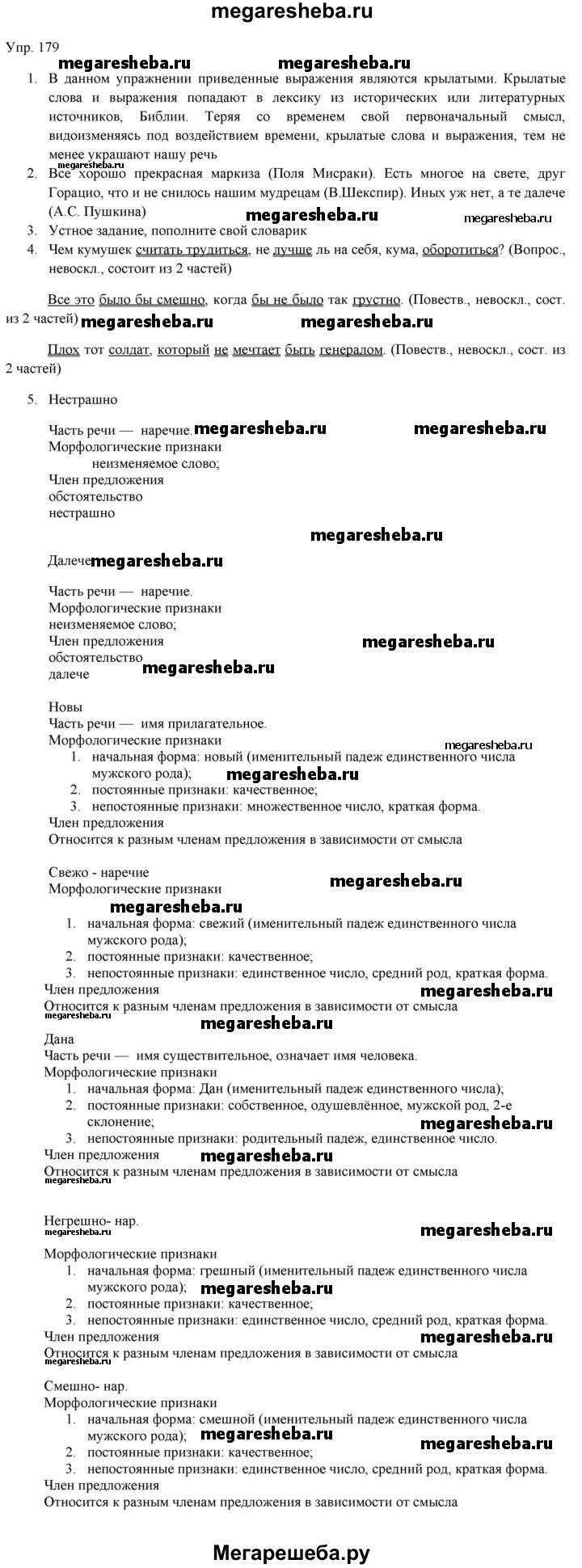 Подробный решебник (ГДЗ) по Русскому языку за 11 (одиннадцатый) класс - готовый ответ упражнение - 179. Авторы учебника: Львова, Львов, Базовый уровень. Издательство: Мнемозина 2019.