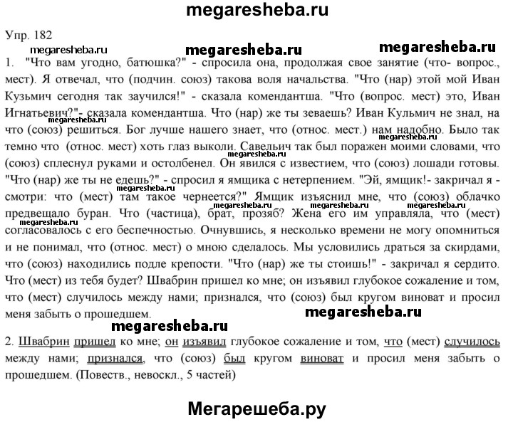Подробный решебник (ГДЗ) по Русскому языку за 11 (одиннадцатый) класс - готовый ответ упражнение - 182. Авторы учебника: Львова, Львов, Базовый уровень. Издательство: Мнемозина 2019.
