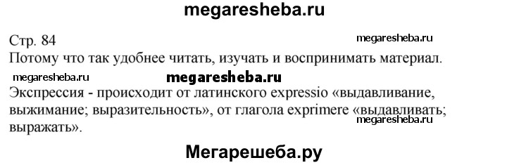 Подробный решебник (ГДЗ) по Русскому языку за 11 (одиннадцатый) класс - готовый ответ вопросы и задания (?) - стр.84. Авторы учебника: Львова, Львов, Базовый уровень. Издательство: Мнемозина 2019.