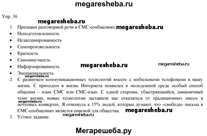 Подробный решебник (ГДЗ) по Русскому языку за 11 (одиннадцатый) класс - готовый ответ упражнение - 36. Авторы учебника: Львова, Львов, Базовый уровень. Издательство: Мнемозина 2019.