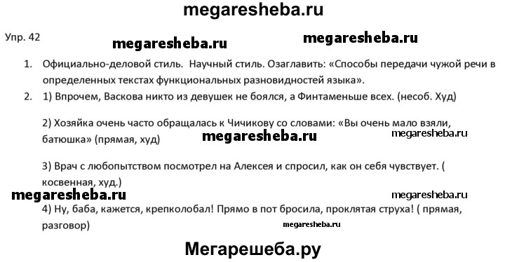 Подробный решебник (ГДЗ) по Русскому языку за 11 (одиннадцатый) класс - готовый ответ упражнение - 42. Авторы учебника: Львова, Львов, Базовый уровень. Издательство: Мнемозина 2019.