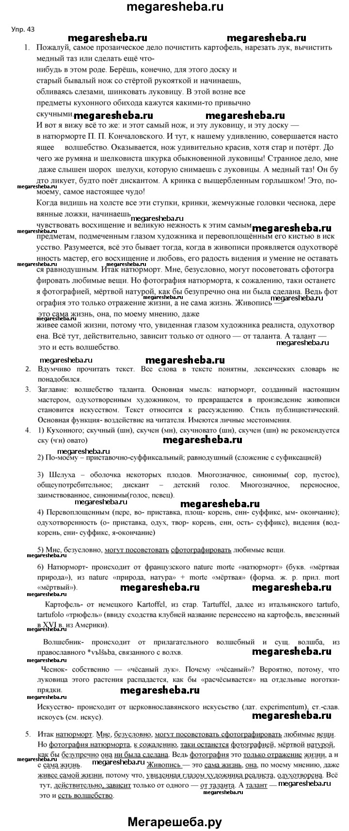 Подробный решебник (ГДЗ) по Русскому языку за 11 (одиннадцатый) класс - готовый ответ упражнение - 43. Авторы учебника: Львова, Львов, Базовый уровень. Издательство: Мнемозина 2019.