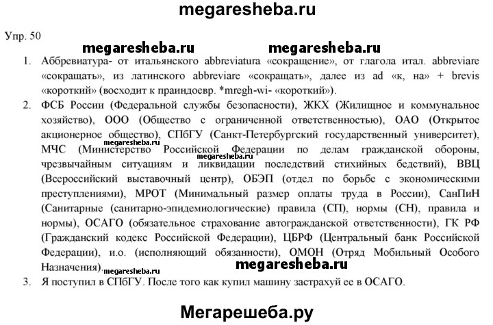 Подробный решебник (ГДЗ) по Русскому языку за 11 (одиннадцатый) класс - готовый ответ упражнение - 50. Авторы учебника: Львова, Львов, Базовый уровень. Издательство: Мнемозина 2019.