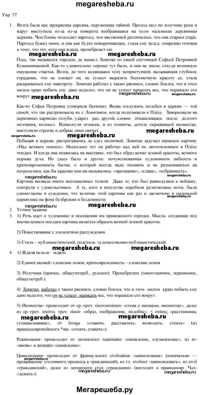 Подробный решебник (ГДЗ) по Русскому языку за 11 (одиннадцатый) класс - готовый ответ упражнение - 57. Авторы учебника: Львова, Львов, Базовый уровень. Издательство: Мнемозина 2019.