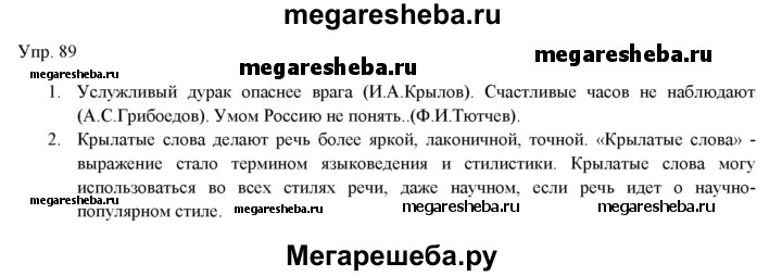 Подробный решебник (ГДЗ) по Русскому языку за 11 (одиннадцатый) класс - готовый ответ упражнение - 89. Авторы учебника: Львова, Львов, Базовый уровень. Издательство: Мнемозина 2019.