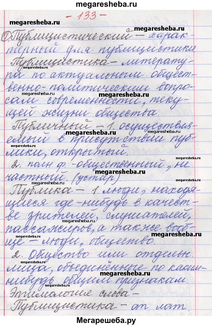 Подробный решебник (ГДЗ) по Русскому языку за 11 (одиннадцатый) класс - готовый ответ упражнение - 133. Авторы учебника: Львова, Львов, Базовый и углубленный уровень. Издательство: Мнемозина 2016.