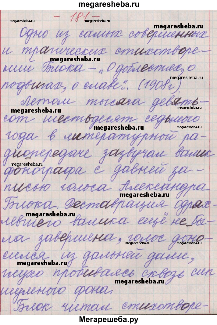 Подробный решебник (ГДЗ) по Русскому языку за 11 (одиннадцатый) класс - готовый ответ упражнение - 181. Авторы учебника: Львова, Львов, Базовый и углубленный уровень. Издательство: Мнемозина 2016.