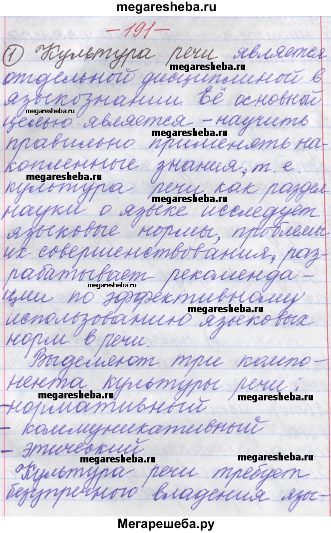 Подробный решебник (ГДЗ) по Русскому языку за 11 (одиннадцатый) класс - готовый ответ упражнение - 191. Авторы учебника: Львова, Львов, Базовый и углубленный уровень. Издательство: Мнемозина 2016.
