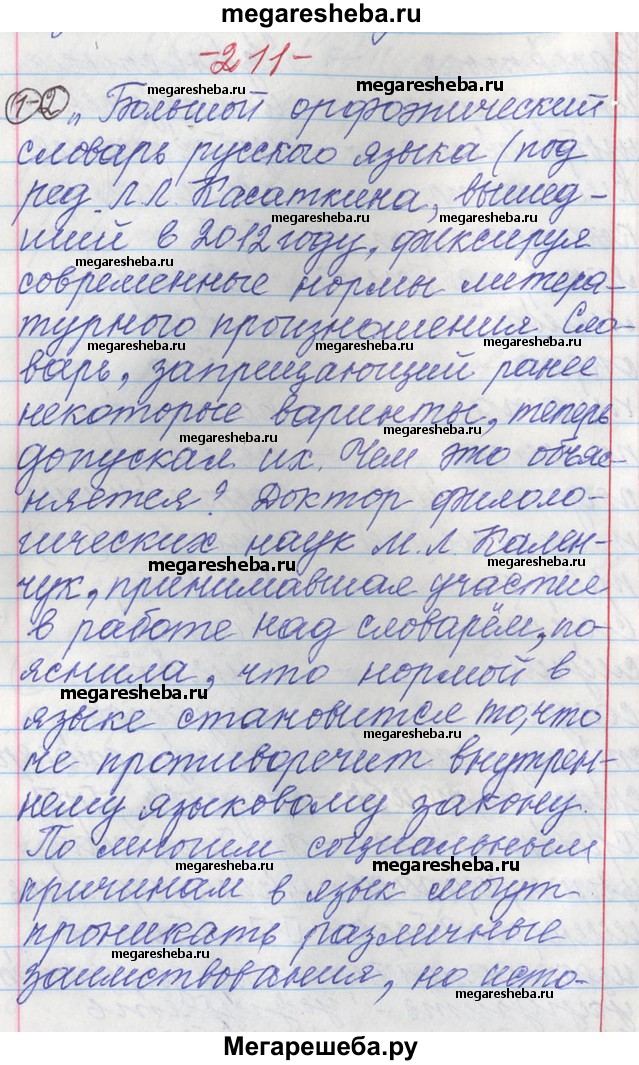 Подробный решебник (ГДЗ) по Русскому языку за 11 (одиннадцатый) класс - готовый ответ упражнение - 211. Авторы учебника: Львова, Львов, Базовый и углубленный уровень. Издательство: Мнемозина 2016.