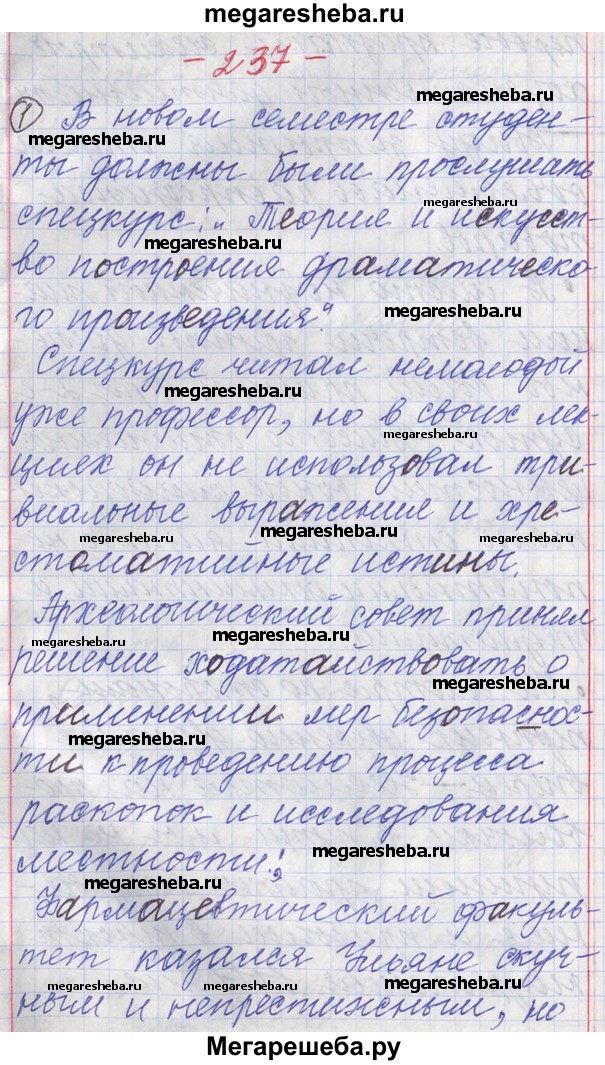 Подробный решебник (ГДЗ) по Русскому языку за 11 (одиннадцатый) класс - готовый ответ упражнение - 237. Авторы учебника: Львова, Львов, Базовый и углубленный уровень. Издательство: Мнемозина 2016.