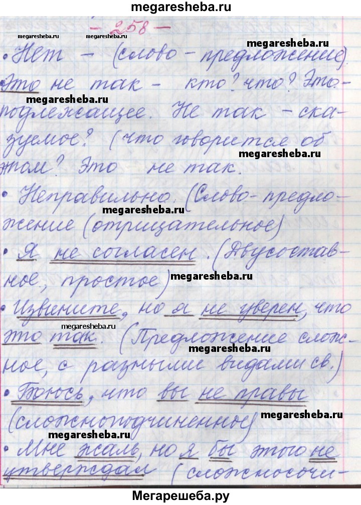 Подробный решебник (ГДЗ) по Русскому языку за 11 (одиннадцатый) класс - готовый ответ упражнение - 258. Авторы учебника: Львова, Львов, Базовый и углубленный уровень. Издательство: Мнемозина 2016.