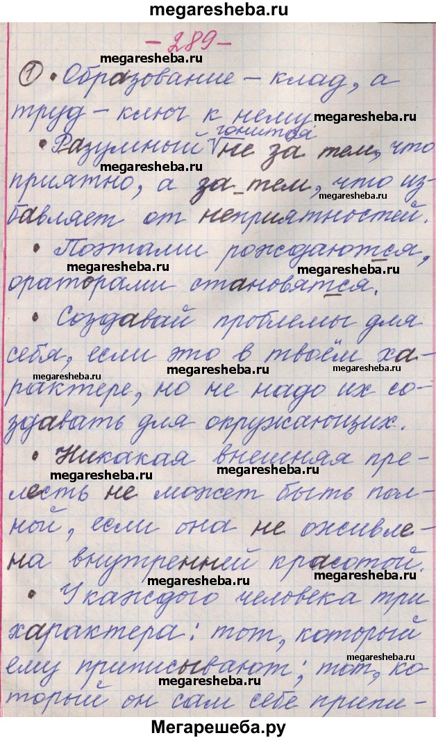 Подробный решебник (ГДЗ) по Русскому языку за 11 (одиннадцатый) класс - готовый ответ упражнение - 289. Авторы учебника: Львова, Львов, Базовый и углубленный уровень. Издательство: Мнемозина 2016.