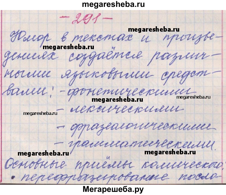 Подробный решебник (ГДЗ) по Русскому языку за 11 (одиннадцатый) класс - готовый ответ упражнение - 291. Авторы учебника: Львова, Львов, Базовый и углубленный уровень. Издательство: Мнемозина 2016.