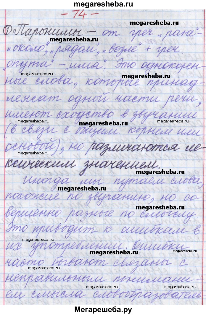 Подробный решебник (ГДЗ) по Русскому языку за 11 (одиннадцатый) класс - готовый ответ упражнение - 74. Авторы учебника: Львова, Львов, Базовый и углубленный уровень. Издательство: Мнемозина 2016.