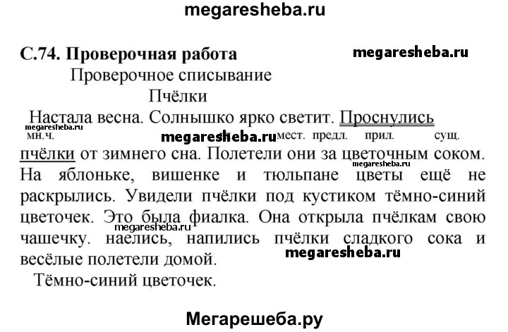 Подробный решебник (ГДЗ) по Русскому языку за 2 (второй) класс проверочные работы - готовый ответ страница - 74. Авторы учебника: Канакина, Щеголева. Издательство: Просвещение 2016-2023.