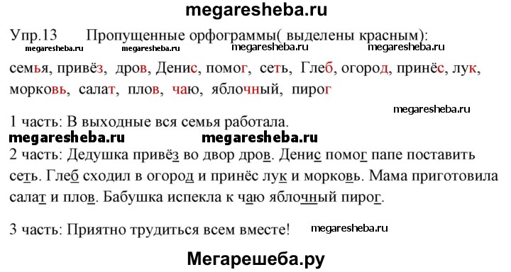 Подробный решебник (ГДЗ) по Русскому языку за 2 (второй) класс рабочая тетрадь - готовый ответ часть 2. упражнение - 13. Авторы учебника: Песняева, Анащенкова. Издательство: Просвещение 2017.