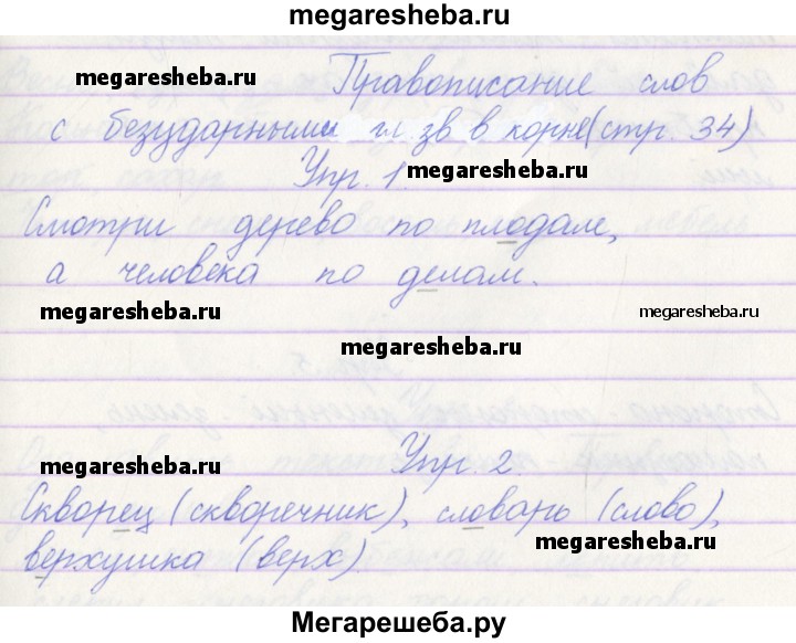ГДЗ по русскому языку 3 класс Канакина проверочные работы страница - 34