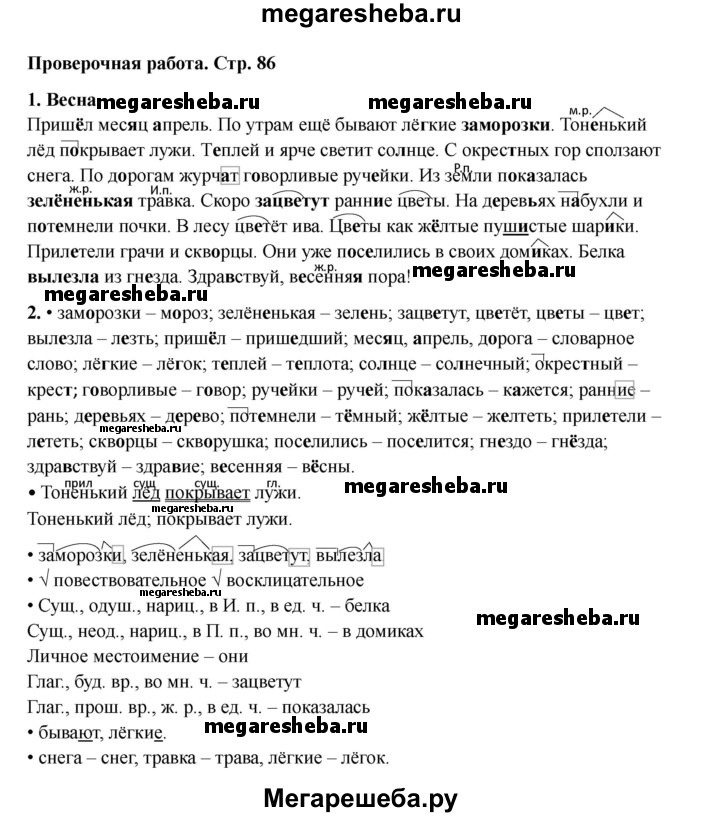 Подробный решебник (ГДЗ) по Русскому языку за 3 (третий) класс проверочные работы - готовый ответ страница - 86. Авторы учебника: Канакина, Щеголева. Издательство: Просвещение 2018-2023.