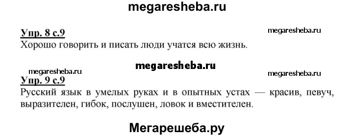 Подробный решебник (ГДЗ) по Русскому языку за 3 (третий) класс - готовый ответ часть 1 - стр. 9. Авторы учебника: Канакина, Горецкий. Издательство: Просвещение 2015-2023.