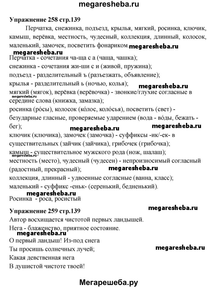 Подробный решебник (ГДЗ) по Русскому языку за 3 (третий) класс - готовый ответ часть 2 - стр. 139. Авторы учебника: Канакина, Горецкий. Издательство: Просвещение 2015-2023.