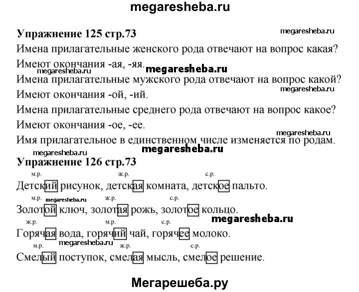 Подробный решебник (ГДЗ) по Русскому языку за 3 (третий) класс - готовый ответ часть 2 - стр. 73. Авторы учебника: Канакина, Горецкий. Издательство: Просвещение 2015-2023.