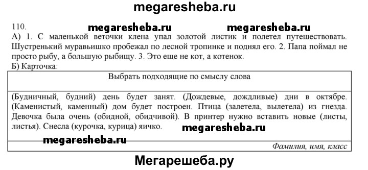 Подробный решебник (ГДЗ) по Русскому языку за 3 (третий) класс - готовый ответ упражнение - 110. Авторы учебника: Нечаева, Яковлева. Издательство: Фёдоров 2014.