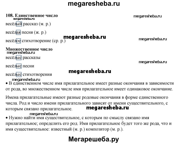 Подробный решебник (ГДЗ) по Русскому языку за 3 (третий) класс Тетрадь для упражнений (рабочая тетрадь) - готовый ответ упражнение - 108. Авторы учебника: Рамзаева, Савинкина. Издательство: Дрофа 2016-2023.