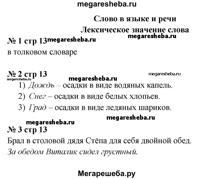 Подробный решебник (ГДЗ) по Русскому языку за 3 (третий) класс тетрадь учебных достижений - готовый ответ страница - 13. Авторы учебника: Канакина. Издательство: Просвещение 2017-2023.