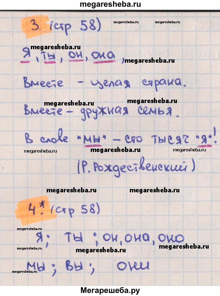 Подробный решебник (ГДЗ) по Русскому языку за 3 (третий) класс тетрадь учебных достижений - готовый ответ страница - 58. Авторы учебника: Канакина. Издательство: Просвещение 2017-2023.