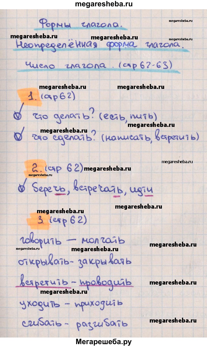 Подробный решебник (ГДЗ) по Русскому языку за 3 (третий) класс тетрадь учебных достижений - готовый ответ страница - 62. Авторы учебника: Канакина. Издательство: Просвещение 2017-2023.