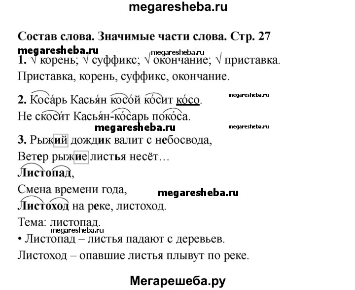 Подробный решебник (ГДЗ) по Русскому языку за 4 (четвертый) класс проверочные работы - готовый ответ страница - 27. Авторы учебника: Канакина. Издательство: Просвещение 2017-2023.