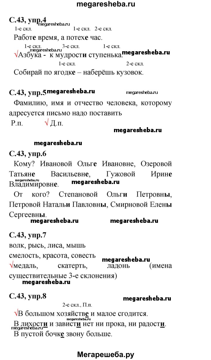 Подробный решебник (ГДЗ) по Русскому языку за 4 (четвертый) класс проверочные работы - готовый ответ страница - 43. Авторы учебника: Канакина. Издательство: Просвещение 2017-2023.
